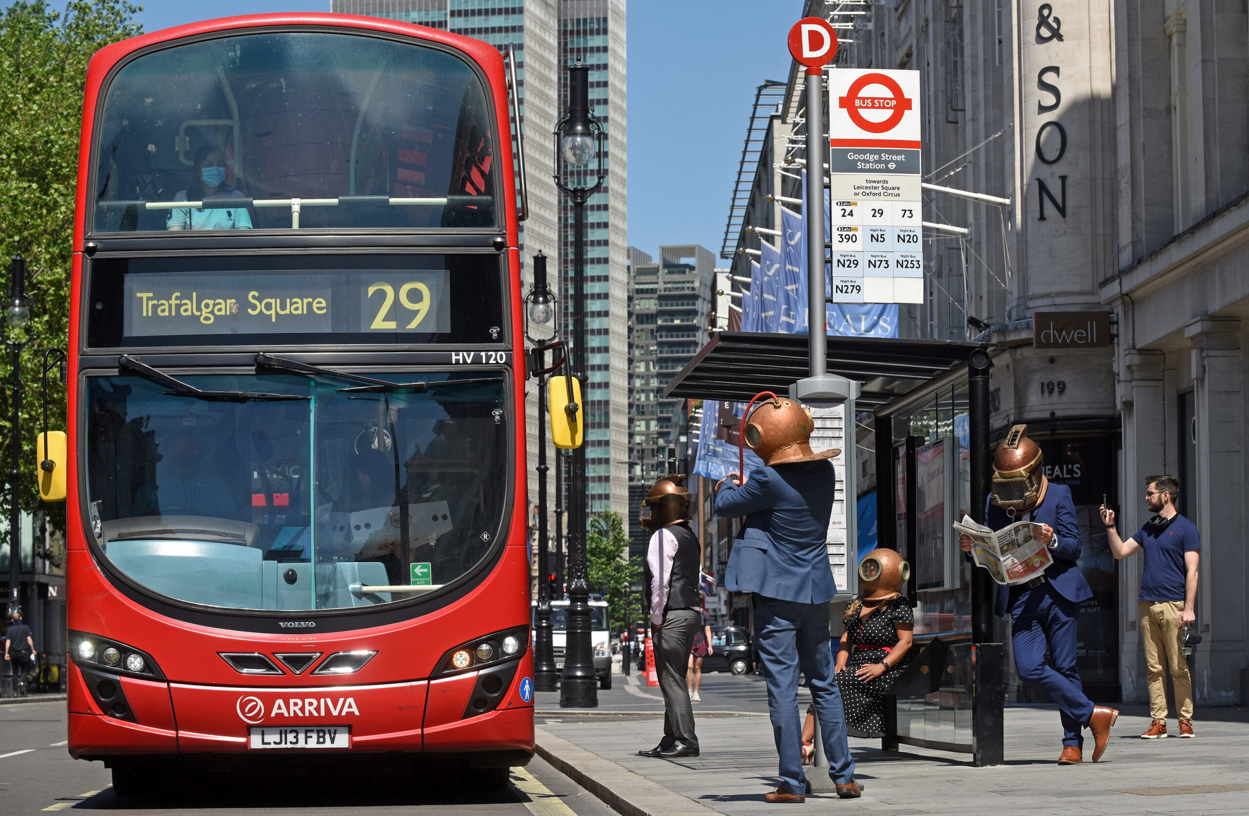 To accompany the statistics, 361 created a photo stunt in iconic locations around London using the Nuaire sales team wearing deep-sea diver helmets and full city business suits to further communicate the importance of individual air supplies in the workplace.